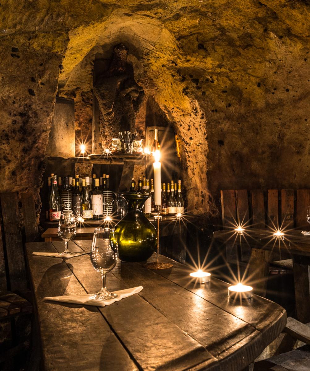 Food, more food & wine tasting in medieval cellar