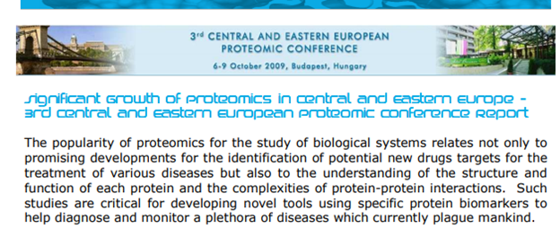 Budapest, Hungary - 3rd Central and Eastern European Proteomic Conference, 6–9 October 2009