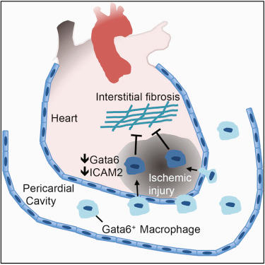 Macrophages play an important role in structural cardiac remodeling and the transition to heart failure following myocardial infarction (MI). This study examined the contribution of resident cavity macrophages located in the pericardial space adjacent to the site of injury. They found that disruption of the pericardial cavity accelerated maladaptive post-MI cardiac remodeling. Gata6 + macrophages in mouse pericardial fluid contributed to the reparative immune response.
